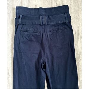 COS High Waist paper bag trouser / dressy pants. Navy blue. Belt tie. 2 side pockets & 2 back pockets.