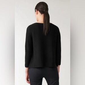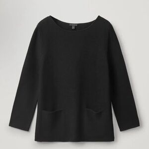 A modern take on a classic knit staple. Designed from pure merino with a knitted quality, this sweater is made for smart workwear looks during the temperature drop. - A-line shape - Tubular round neck - ¾-length sleeves - Two slit pockets at the front 100% Merino wool / Machine washable