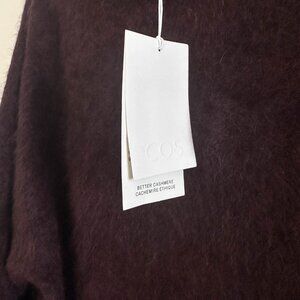 Knitwear takes on new textures this season at COS. This burgundy turtleneck jumper is knitted from pure Good Cashmere Standard® cashmere that has been brushed to achieve its soft, tactile hand feel. The relaxed shape allows it to be styled over base layers in the coolest months.