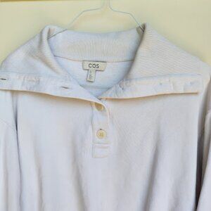 COS Beige Drawstring Hem Cropped Button Up Foldover Funnel Neck Sweater L