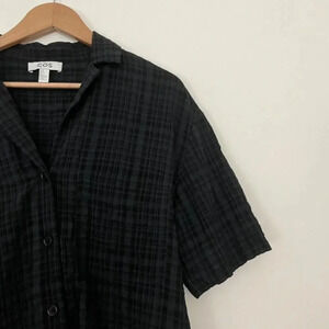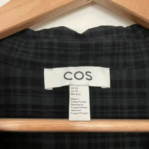 COS Black Collared Short Sleeve Checkered Seersucker Top Size XS