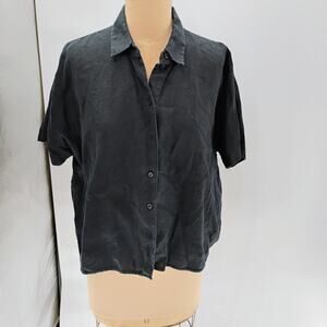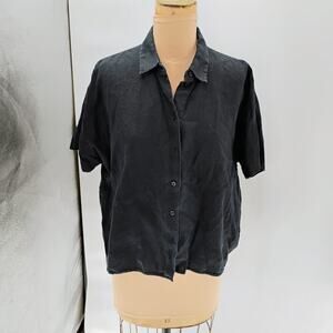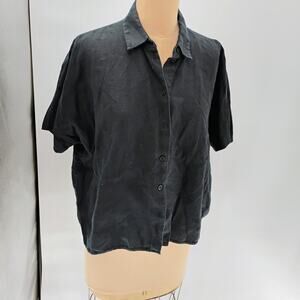COS Black Collared Short Sleeve Checkered Seersucker Top Womens 100% linen boxy