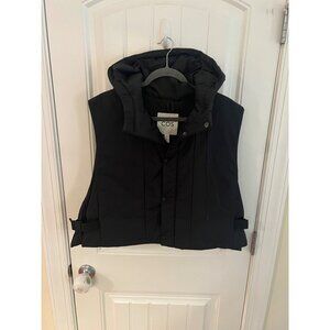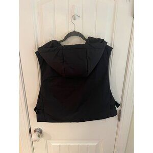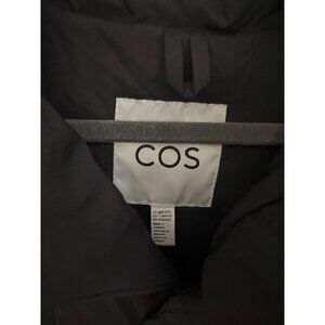 This COS black hooded puffer vest provides warmth and style. The adjustable waist offers a customized fit. It is suitable for layering in colder weather.