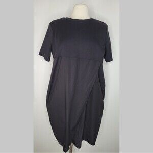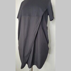 COS Black Short Sleeve Mini Dress Size M Asymmetrical Pockets Front Pleat