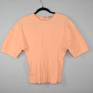 COS Blouse Womens Size 2 Orange Pleated Short Sleeve *Hemmed