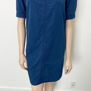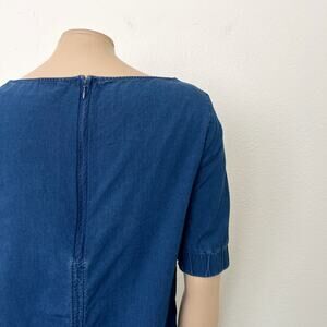 [COS] Blue Chambray Denim Half Sleeve Boat Neck Shift A-Line Mini Dress Size 6