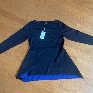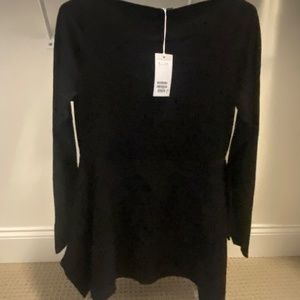 COS navy blue sweater with peplum waist-line. Peek-a-boo royal blue color seen with movement of peplum.