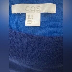 COS Blue Wool 3/4 Sleeve Oversized Round Neck Size Medium Sweater