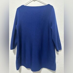 Elegant blue 3/4 sleeve sweater. Perfect for any occasion.