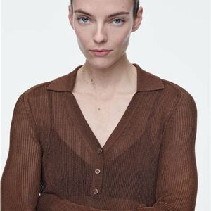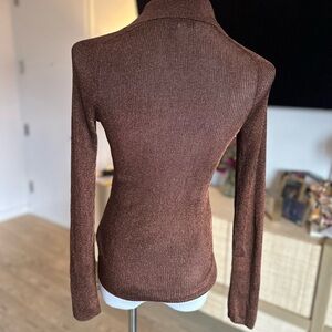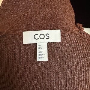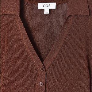 COS Brown Metallic Ribbed Knit Top