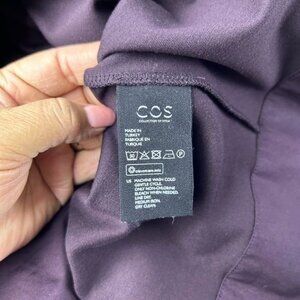 COS Burgundy Long Sleeve Cotton Boatneck Contrast Button Cuff Shift Dress Size M