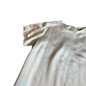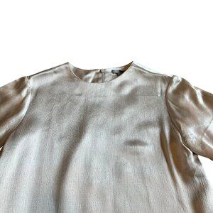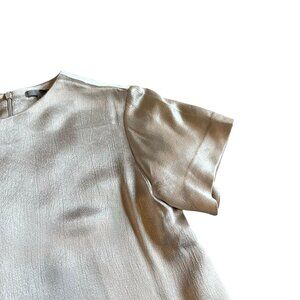 COS Champagne Short Sleeve Blouse Shirt Textured Satin Crew Neck Size Small