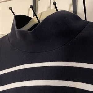 COS Collection of Style Navy and White Striped High Neck Turtleneck Knit Sweater