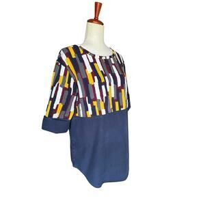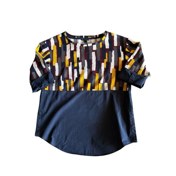 COS Colorblock Geometric Pattern Blouse Navy Abstract Print Top Size S