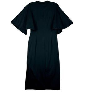 COS Cotton Midi Dress Size Medium Black Cotton Cape Shoulder Slit Hem Minimalist