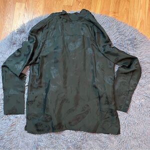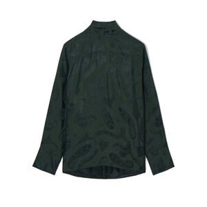 COS Dark Green Paisley Jacquard Satin Silk Tie Back Shirt Size 4