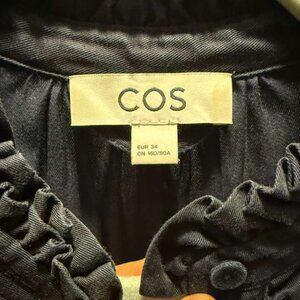 COS Dark Navy Blue Long Shirt Dress | EU34 ~ M | Ruffled Collar | Heavy Cotton