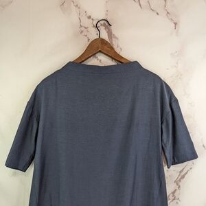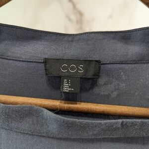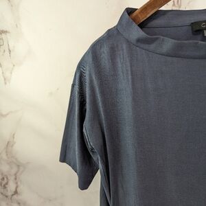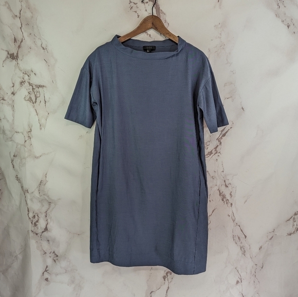 COS Dress Womens 4 Small Blue Shift Mock Neck Pockets Cupro Tunic Short Mini