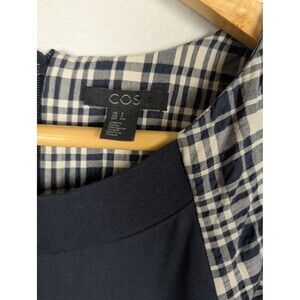 COS Dress Womens Medium Navy Blue Plaid Puff Sleeve Midi