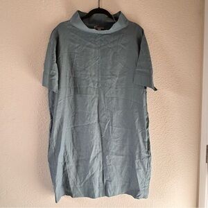 COS Drop Shoulder Mock Cowl Neck Midi Dress Muted Blue Color Women Size EUR 42 NWT/ non stretchy/ has hidden pockets/ has a boxy / light weight
