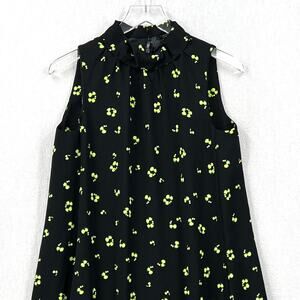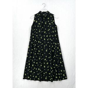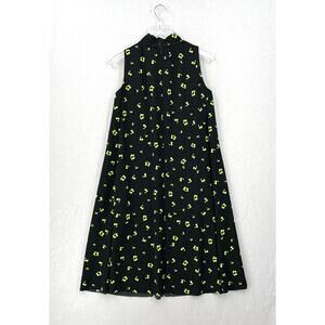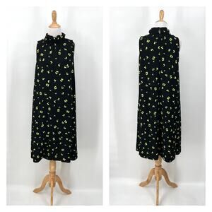 COS Frill Neck A-line Printed Dress Womens 4 Black Sleeveless Swing Floral Print