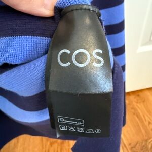 COS High Neck Striped Knitted Sweater Organic Cotton Navy Blue Size XS