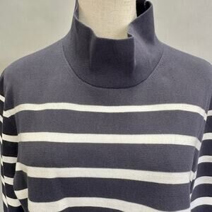 COS High-Neck Striped Knitted Sweater Navy & White Striped Size Medium Maritime