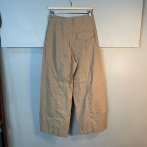 Super cute pair of wide leg khaki colored high waisted pants in a women's size 6. They are made of 100% linen, and are a gorgeous pair of pants! Perfect for a minimalist, chic Parisian look!