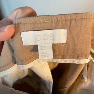 COS Khaki Wide Leg Trouser Pants 100% Linen SZ 6 High Waist Classic Minimalist