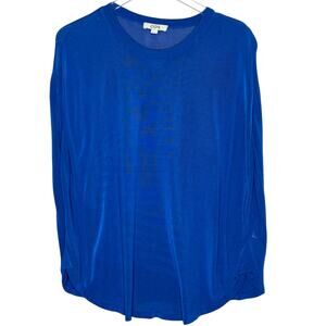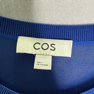COS L Womens Cobalt Blue Knitted Circle Cut Tee Short Semi Sheer Modern *flaw