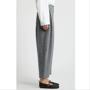 COS Lantern Barrel Leg Pull-on PANTS Size L Grey Boiled Wool Blend Pockets NEW
