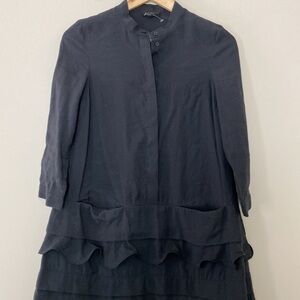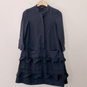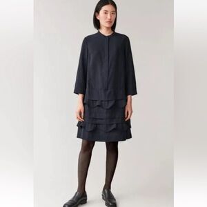 COS Layered Scalloped Edge Shift Dress Long Sleeve Black Size 2