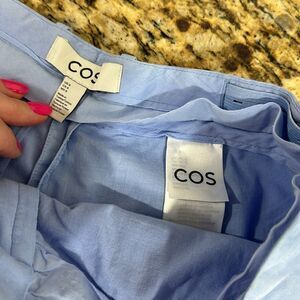 COS Light Blue Linen Blend High Waisted Pleated Front Trouser Shorts Size 8