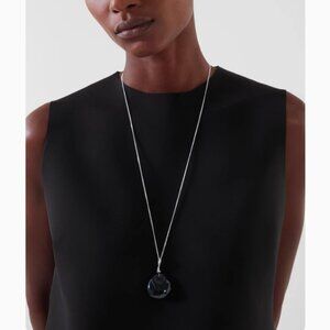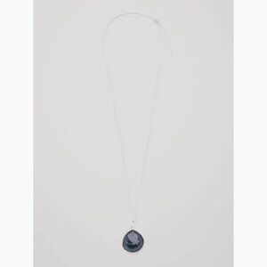 COS Long Glass Pendant Necklace Silver Navy Blue