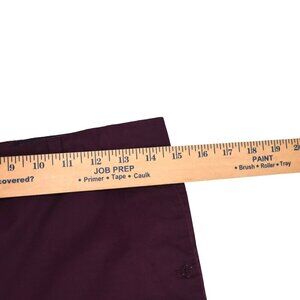 These COS maroon tailored pants balance structure and softness with a straight-leg silhouette that flatters in minimalist form. Crafted from a cotton-spandex blend for light stretch and crisp drape, they’re designed to sit mid-to-high rise with belt loops, a button closure, and a streamlined back pocket detail. US women’s size 8.