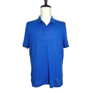 COS | Men | Royal Blue Linen Regular Fit Havana Collar Slub Polo Shirt | Size XL