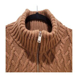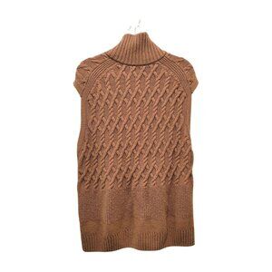 Stay stylish and warm with this tan cable knit vest. Perfect for layering, this vest adds a touch of sophistication to any outfit.