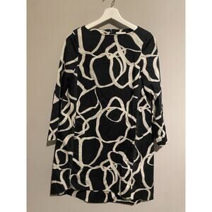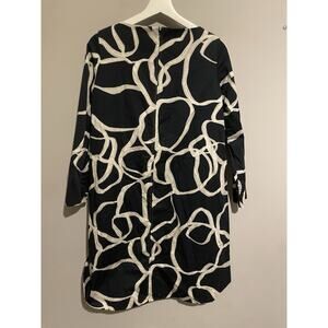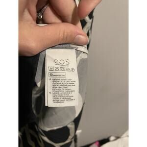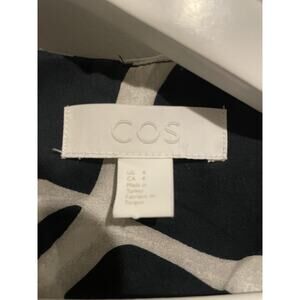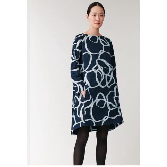 COS Mini Dress Navy Abstract‎ Print Voluminous A-Line Hi Low Long Sleeve US4