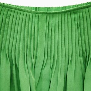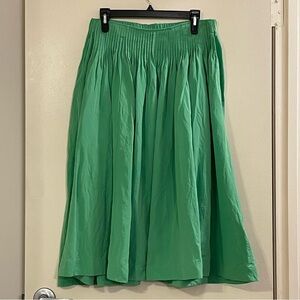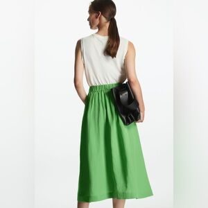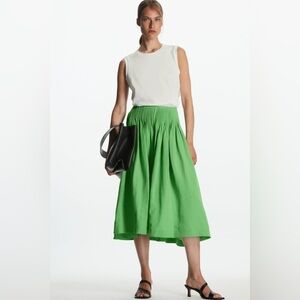 COS NWOT Pintucked Linen Blend A-Line Midi Skirt in Bright Green