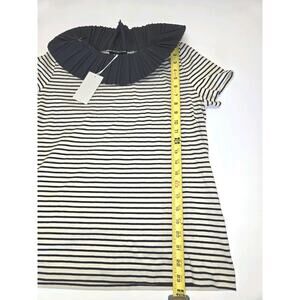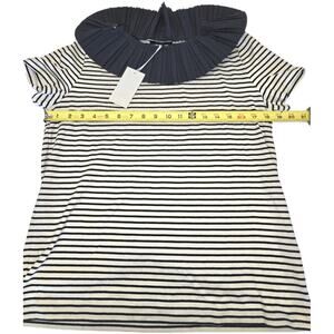 COS NWT Striped Shirt Size Medium Pleated Collar Womens Navy Blue and Off White