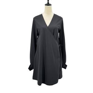 COS NWT Voluminous Long Sleeve Black V-neck Mini Wrap Dress POCKETS