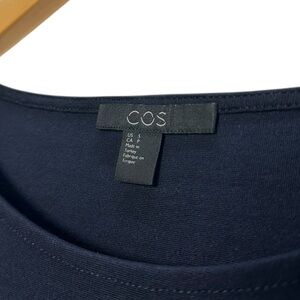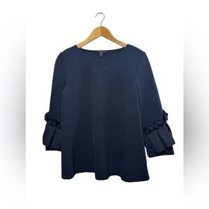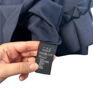 COS Navy Blue 3/4 Sleeve Ruffle Frill Swing Top Blouse Size Small