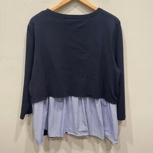 COS Navy Blue Layered Stripe Crewneck Sweater Women's