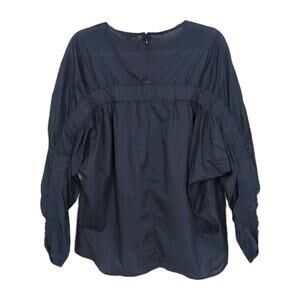 COS Navy Blue Lightweight Cotton Dolman Blouse Elastic Ruching Detail Women's 12