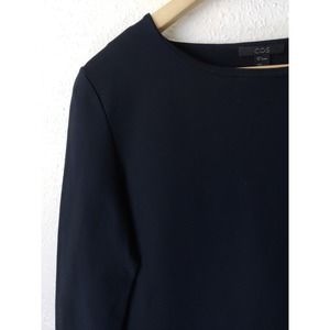 COS Navy Blue Long Sleeve Round Neck Non-Waisted Pullover Sheath Dress Size S