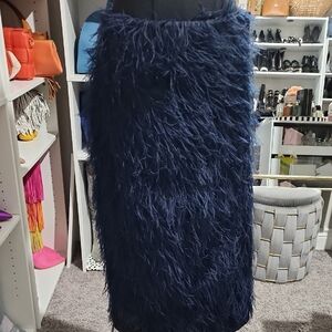 Stylish navy pencil skirt with feathered texture. Adds elegance to any outfit.