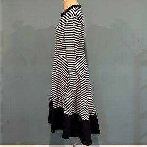 COS Navy & White Striped Long Sleeve Jersey Knit Fit & Flare Midi Dress Medium