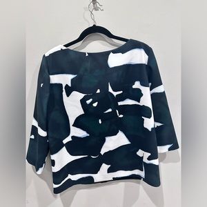 COS Navy and Green 3/4 Kimono Sleeve Top SZ 10. Boxy Look Prefect Condition