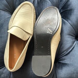 Chic off-white leather loafers. Minimalist style. Perfect for everyday wear.
