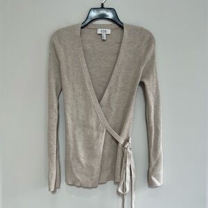 COS Open Tie Front Ribbed Wool Wrap Cardigan in Light Beige, size S